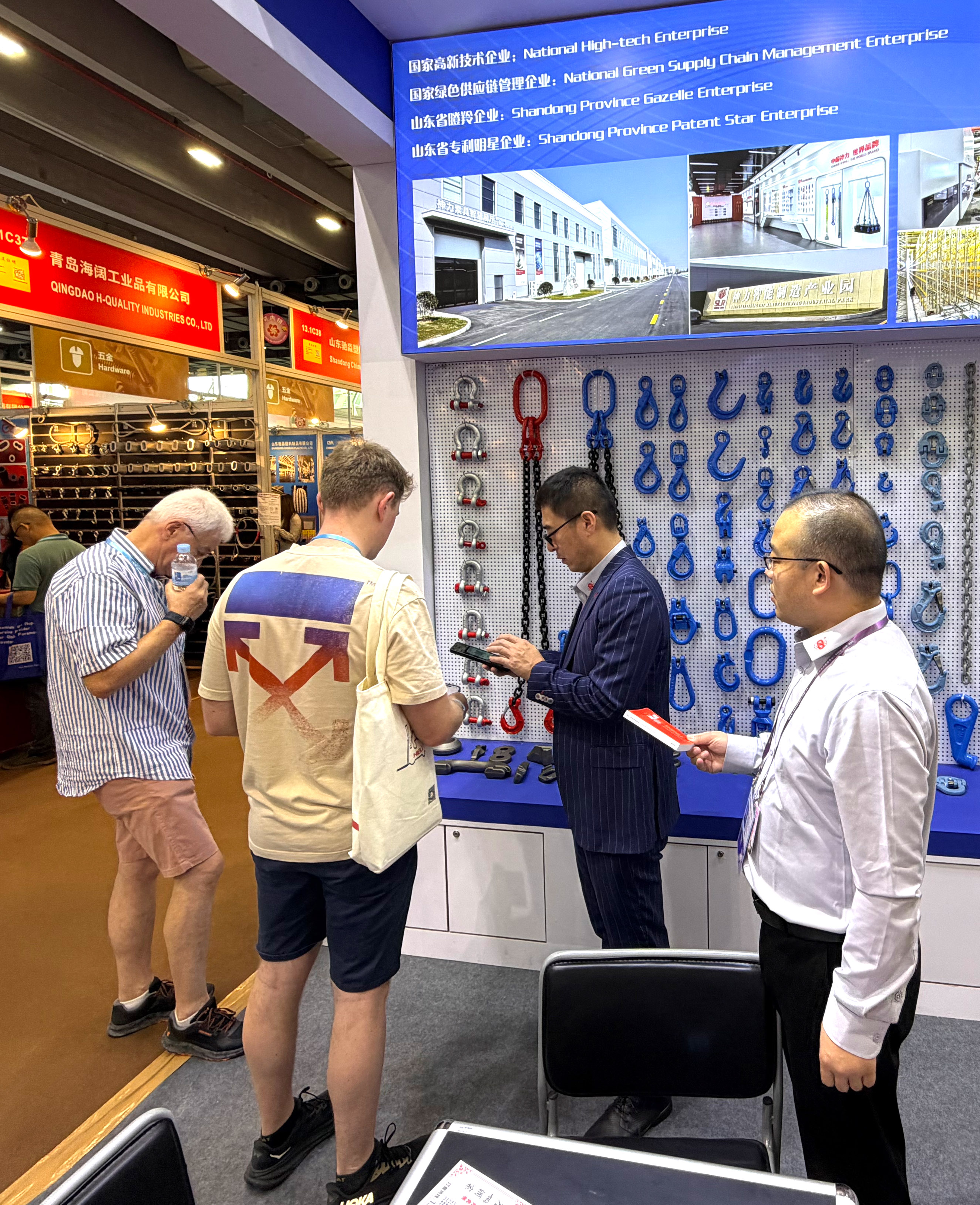 本次廣交會上,神力索具創(chuàng)新采用“制造+貿(mào)易”雙平臺聯(lián)動模式。山東神力索具有限公司帶來全產(chǎn)業(yè)鏈高端產(chǎn)品,從高強度起重鏈條到智能吊裝系統(tǒng),展現(xiàn)深度制造能力;從深海工程專用索具到航空航天高精度配件,每一件產(chǎn)品都凝聚著神力索具對卓越質(zhì)量的極致追求。山東神力進出口有限公司則依托全球化營銷網(wǎng)絡(luò),實現(xiàn)“前端市場反饋”與“后端研發(fā)制造”的無縫對接。這種上下游協(xié)同的參展模式,讓客戶在現(xiàn)場即可體驗從產(chǎn)品定制到跨境交付的一站式服務(wù)。