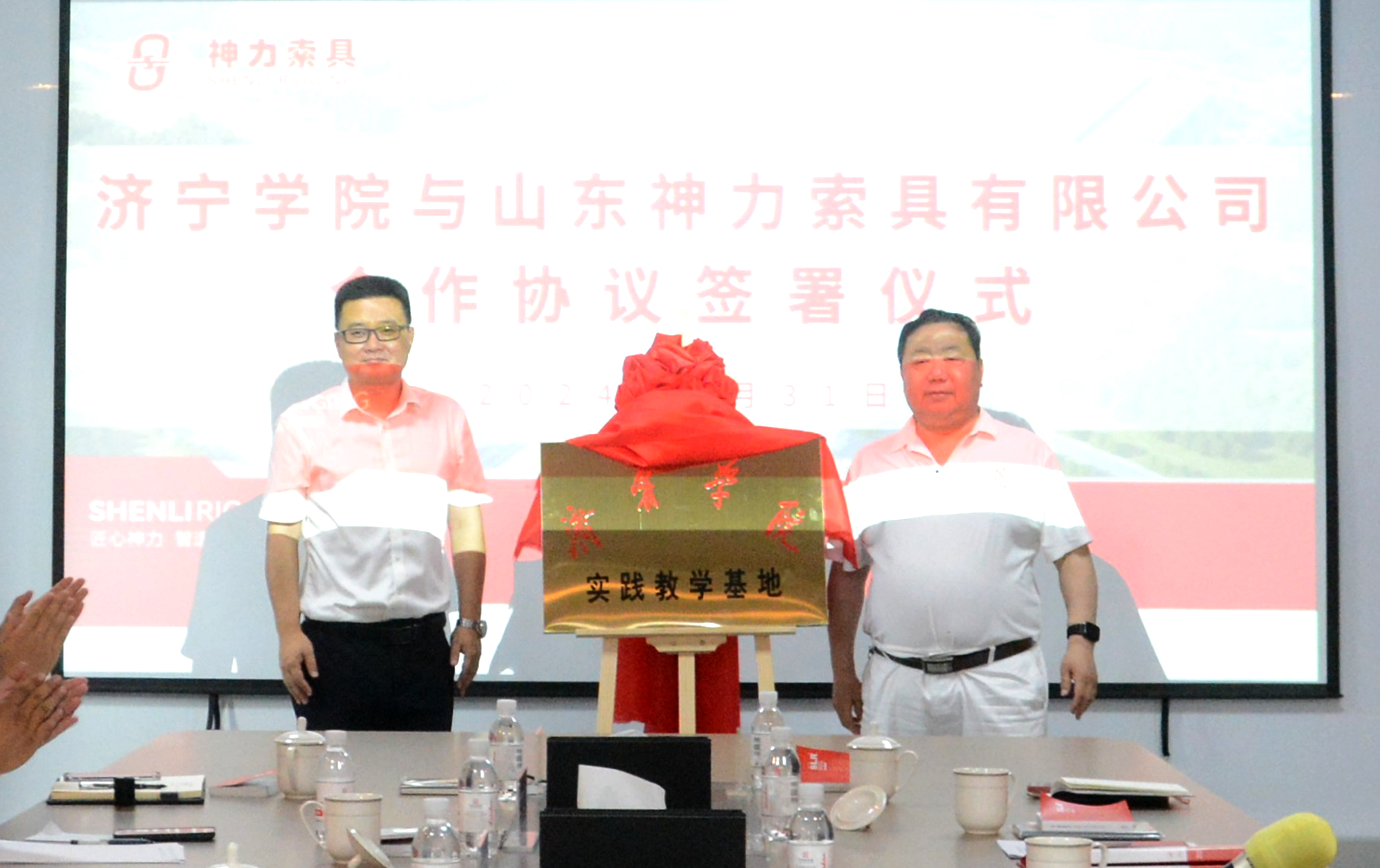 濟(jì)寧學(xué)院副校長劉國棟與神力索具黨委書記杜亞中共同為“濟(jì)寧學(xué)院實(shí)踐教學(xué)基地”、“濟(jì)寧學(xué)院-神力索具智能裝備現(xiàn)代產(chǎn)業(yè)學(xué)院”揭牌。劉國棟表示,神力索具作為市域智能制造轉(zhuǎn)型升級模范企業(yè),是廣大理工科學(xué)子向往的實(shí)踐寶地,通過合作建立該學(xué)院,將大大提高實(shí)踐教學(xué)質(zhì)量,激發(fā)廣大學(xué)子科技創(chuàng)新精神、創(chuàng)業(yè)能力和實(shí)踐能力。校企合作,互利共贏。在未來將形成更多的高質(zhì)量合作成果,推動區(qū)域高質(zhì)量發(fā)展。